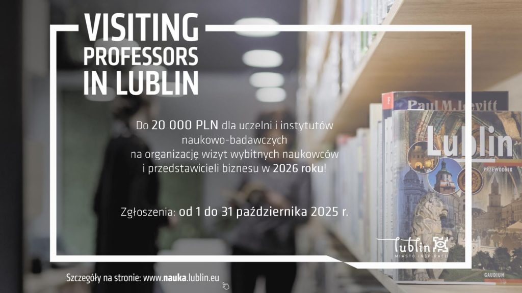 Miasto Lublin z dumą ogłasza kolejną edycję Programu Visiting Professors in Lublin. Zapraszamy lubelskie uczelnie wyższe oraz instytuty naukowo-badawcze do udziału w programie. W ramach inicjatywy zgłoszeni mogą zostać wybitni specjaliści i badacze, których obecność w Lublinie wzbogaci środowisko akademickie miasta, wpłynie na rozwój badań naukowych oraz zainteresowanie nauką wśród mieszkańców.